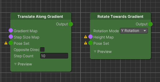 slope. To achieve this, we can use the Rotate Towards Gradient node. What this node will do is rotate the Poses towards