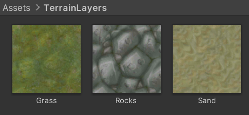 - Unity's Terrain Layer assets have to be created and set up with texture files and material properties.